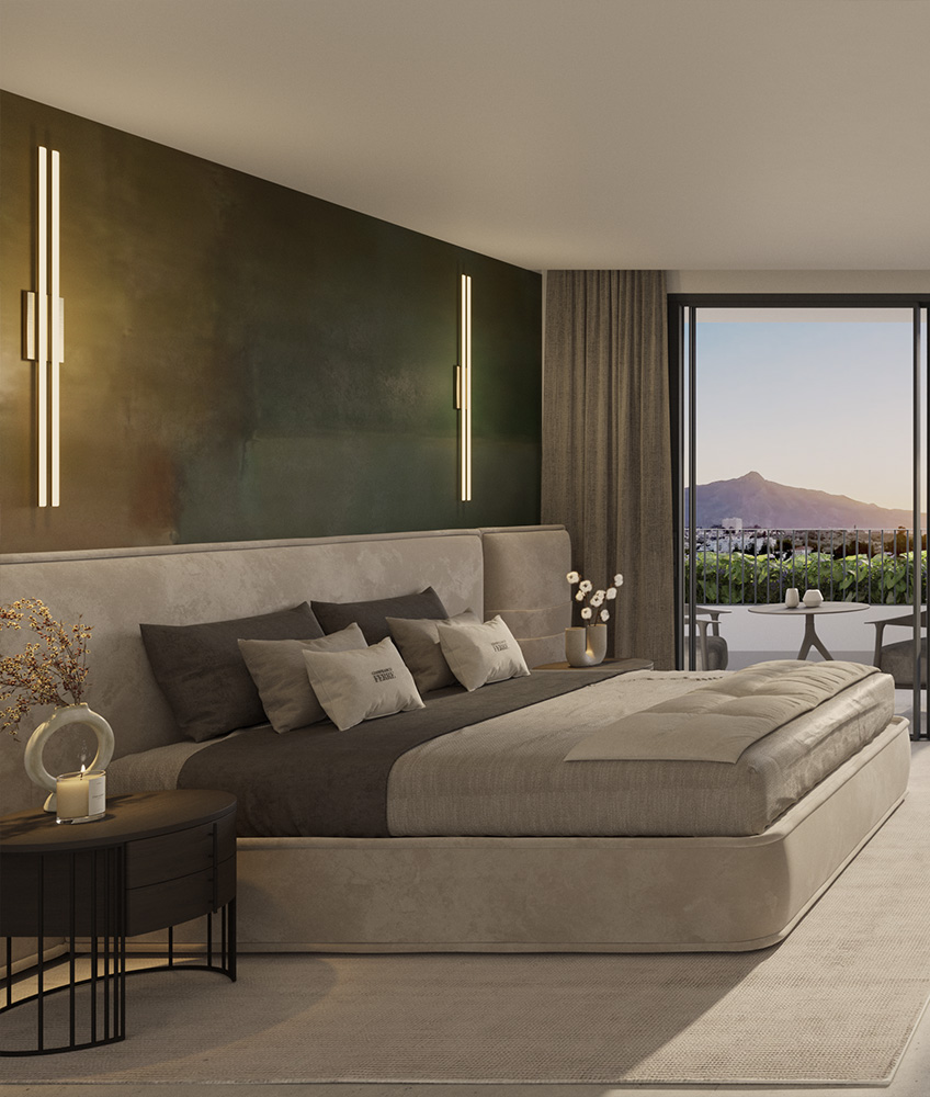 1-, 2- and 3-bedroom homes designed for both permanent living and those seeking a comfortable base for short or extended stays in Marbella. Integrated or semi-open kitchens and large living rooms connect naturally to spacious terraces, while efficient layouts, open spaces, and terraces extend the living area. An outdoor kitchen can be added as a customisation in selected units.