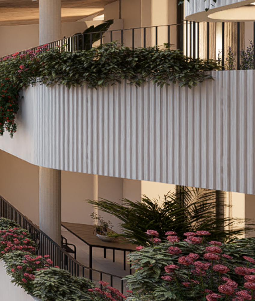 Huete Arquitectos signs the architecture of The Grove, conceived under one clear principle: light first, with light as the starting point. Clean volumes, carefully studied orientation and integrated terraces shape a contemporary, human-scale ensemble where interior and exterior connect naturally. Every detail follows the same goal: to create a serene urban sanctuary, coherent and meant to be enjoyed every day.